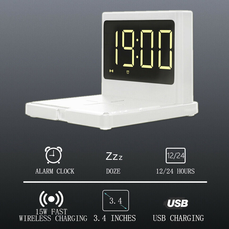 Electric Led Display Digital Alarm Clock With 15w Qi Wireless Charger For Iphone Ebay